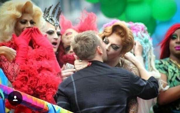 Domingo passado (29), na Parada Gay de São Paulo, uma drag queen experimentou interagir com dois galãs presentes na famosa cena.